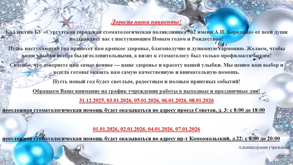 Для оперативности получения Вами медицинской помощи в БУ «Сургутская городская стоматологическая поликлиника №2 имени А.И.Бородина»